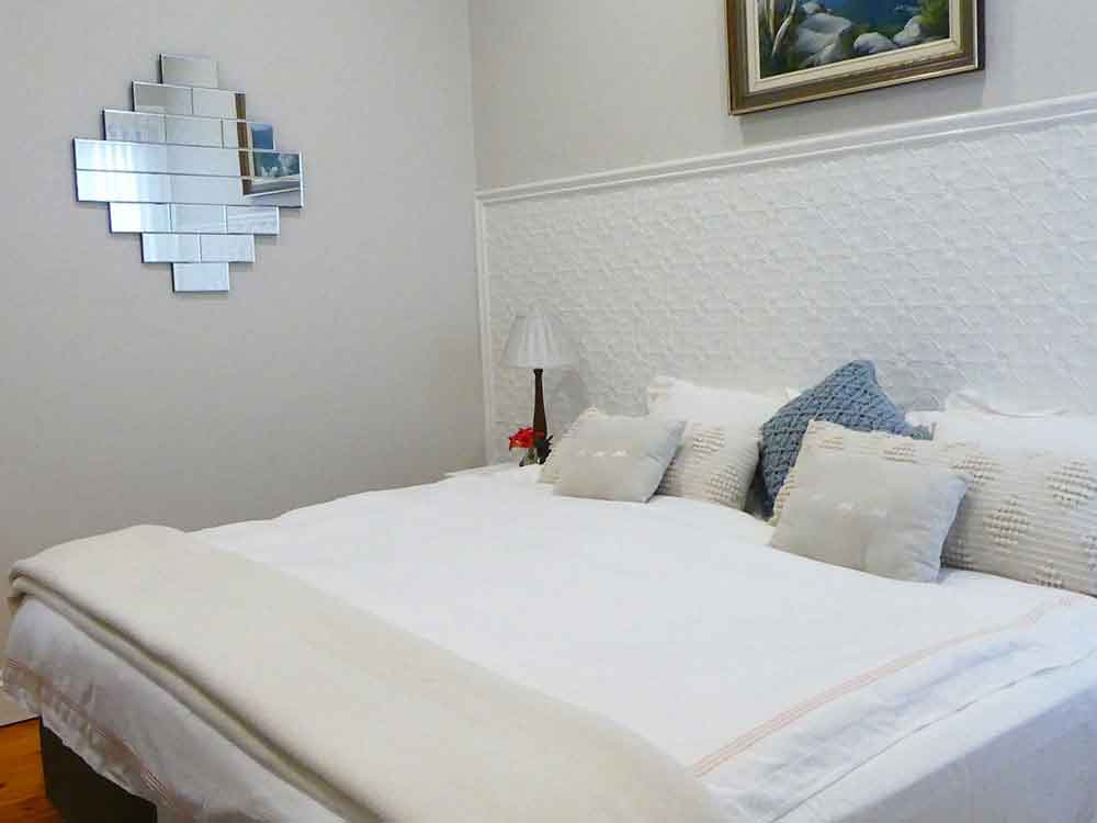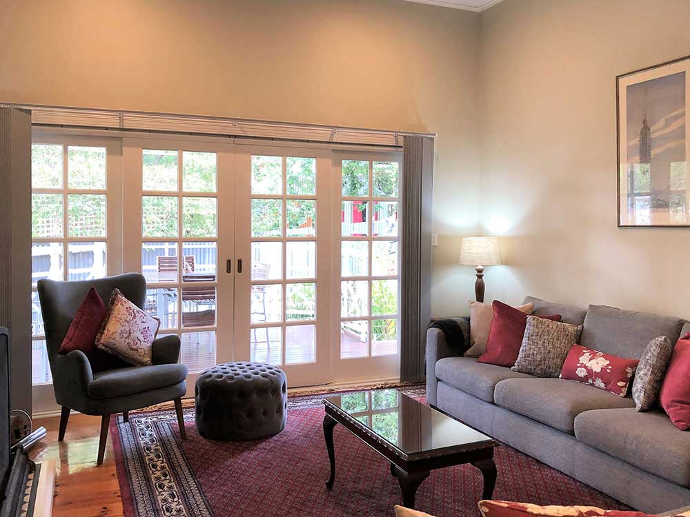 Positioned with views yet near the centre of town, Fairbank is a 19th century Victorian in a beautiful garden setting. Inside, there are three quality bedrooms: a superking room, or two king singles; and two queen bedrooms. All have dedicated bathing facilities: two full bathrooms (including the master’s new Carrara marble suite) and the superking has an accessible wet room. There’s ducted climate control or gas heating for extra comfort, and an open fire for socialising. The latest entertainment technology and wifi are there to keep the youngsters happy. The house has superior furnishings and fittings and is meticulously maintained; it is wheelchair-friendly.